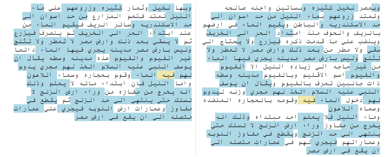 Image 4: The diff viewer highlights the similarities between passages from al-Istakhri’s Masalik and Ibn Hawqal’s Surat al-ard.