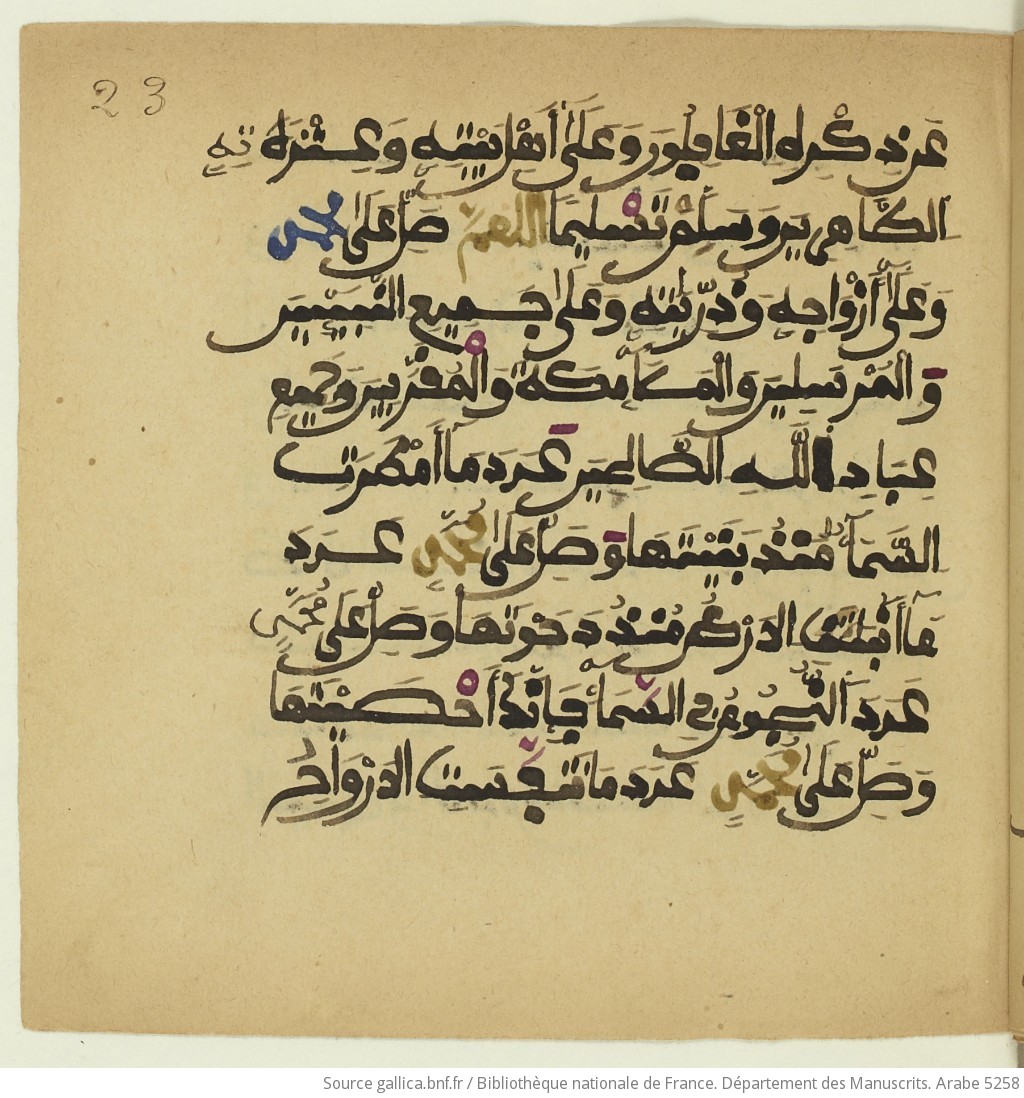 BnF Arabe no. 5258, 23r (from al-Jazūlī’s Dalāʾil al-khayrāt)