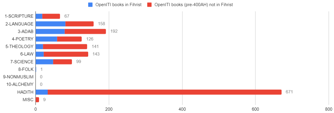 The subject matter coverage of the OpenITI vs. the Fihrist